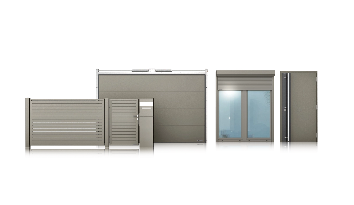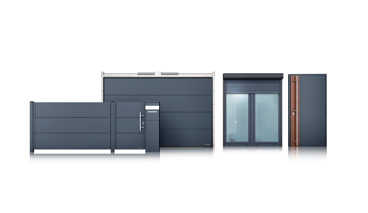 Im System Home Inclusive 2.0 sind Garagentore, Türen, Fenster und Zäune in einheitlichen Farbtönen und Oberflächen erhältlich – von mattem Schwarz über seidiges Grau bis zu metallisch glänzenden Strukturen. Dadurch entsteht ein harmonisches, modernes Erscheinungsbild, das architektonische Klarheit ausstrahlt.