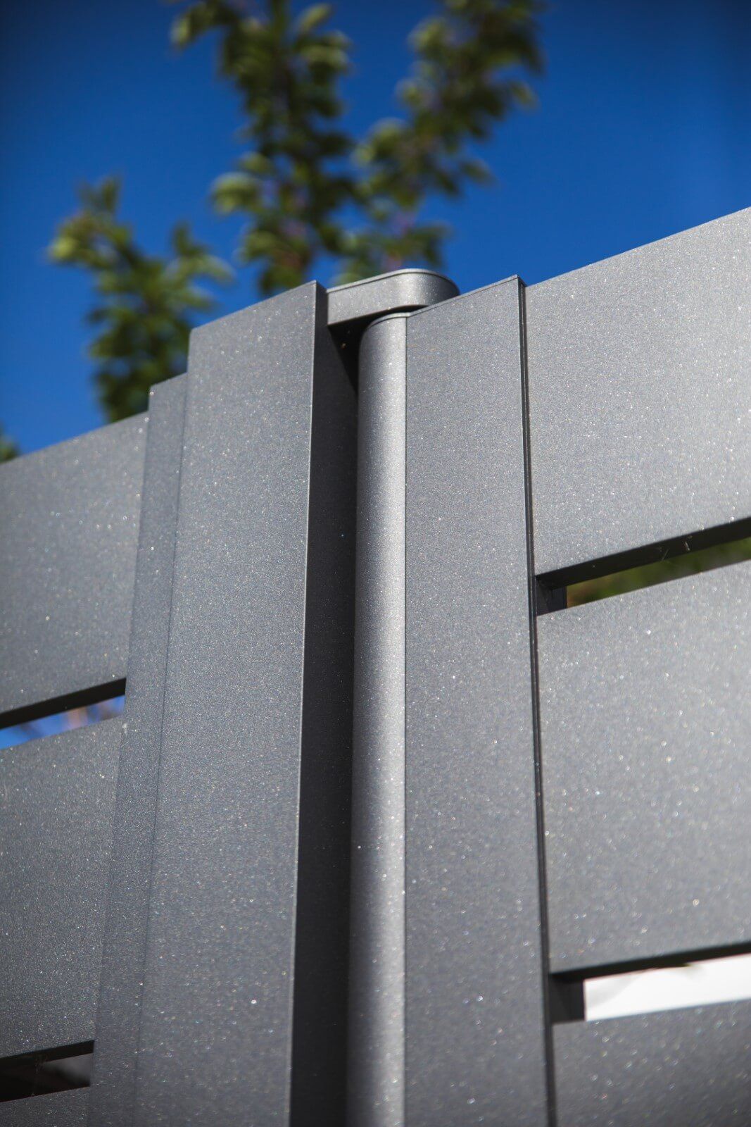 Dieses Modell fügt sich perfekt in moderne Architektur ein und betont die Schlichtheit der Form und die Eleganz des Grundstücks. Dank der Herstellung aus Aluminium ist der Zaun korrosionsbeständig und erfordert keine aufwendige Wartung. Die freie Wahl von Farbe und Größe ermöglicht eine ideale Anpassung des Zauns an das Grundstück.